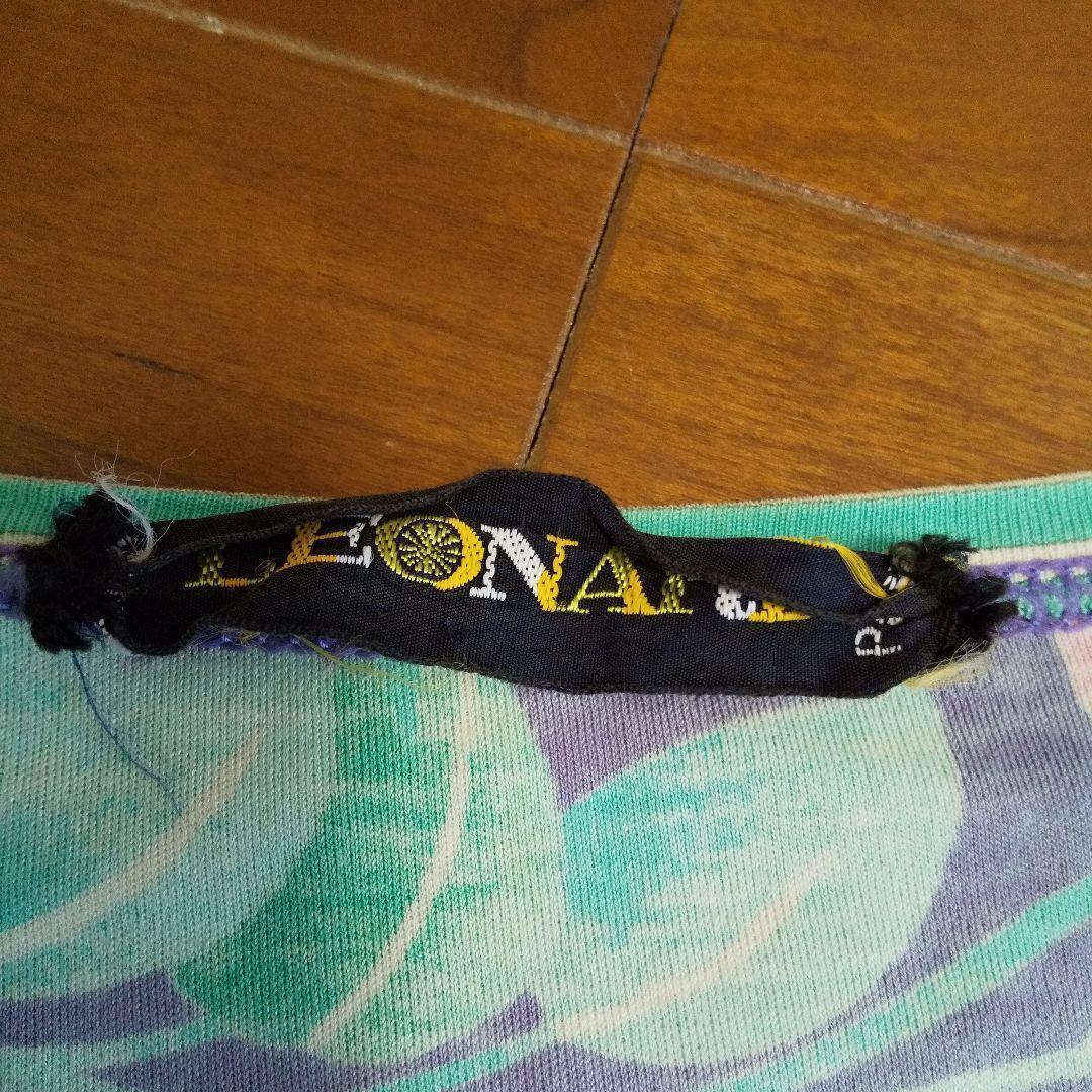 ky149 LEONARD 綿100 総柄プリント 半袖トップス 薄紫系