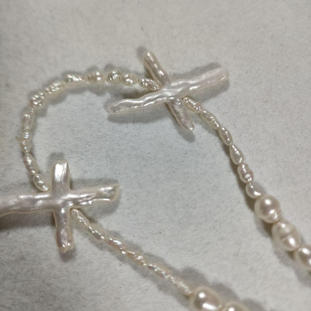 a93 超美品 本真珠 バロックパール クロス ネックレス 925