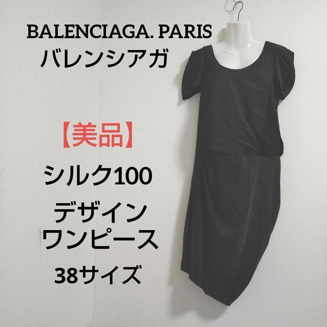 ky143 バレンシアガ デザインワンピース ブラック シルク100