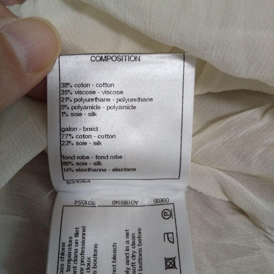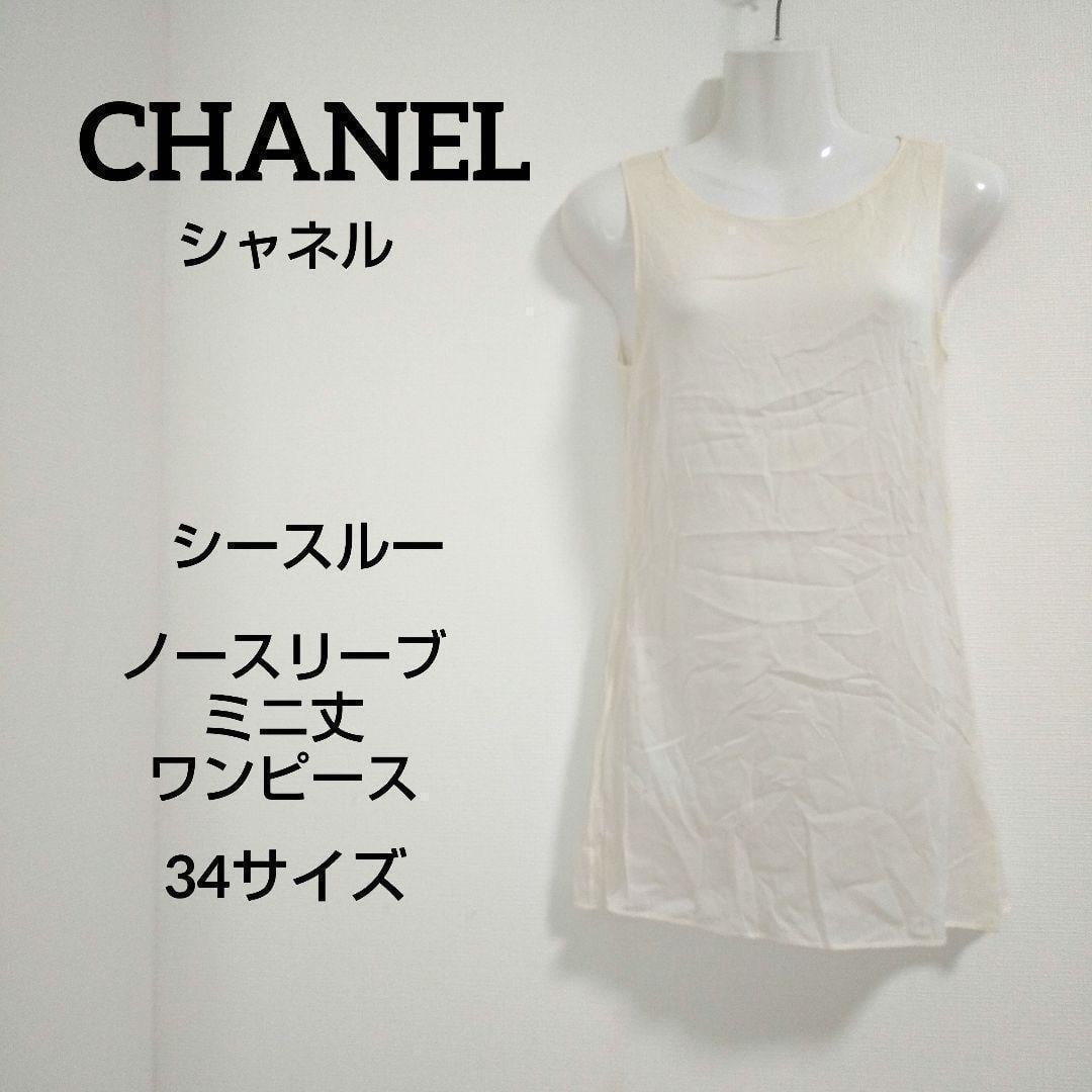 ky151 CHANEL シースルー ミニ ワンピース 34 エクリュ シルク混