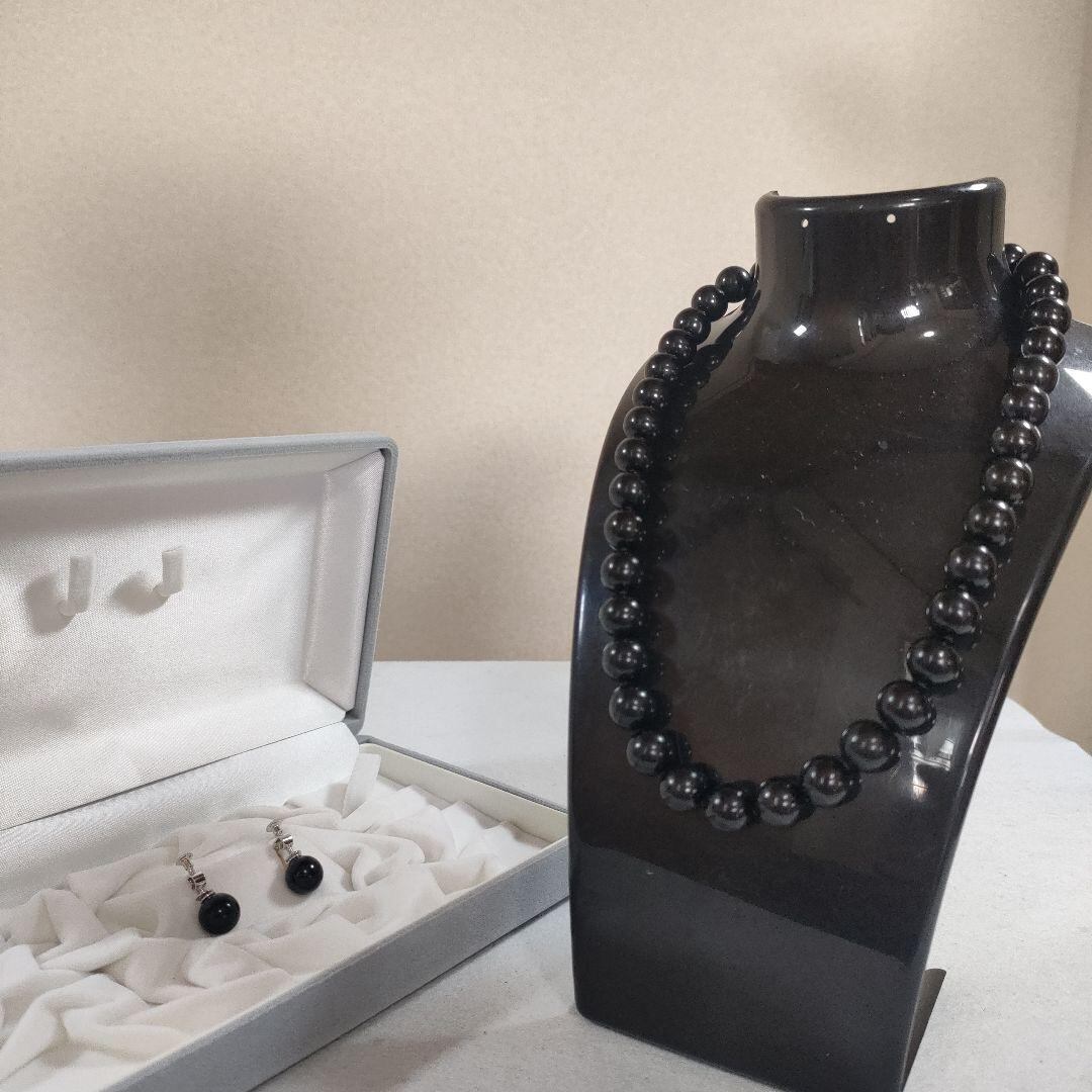P2 超美品 天然ジェット 黒 鑑定済 ネックレス イヤリング