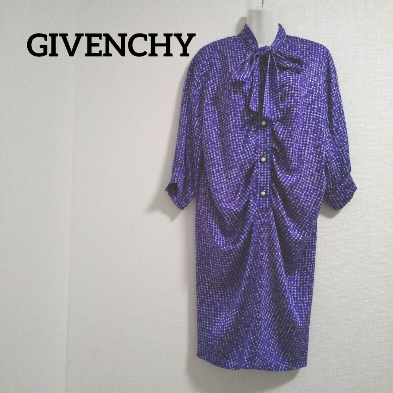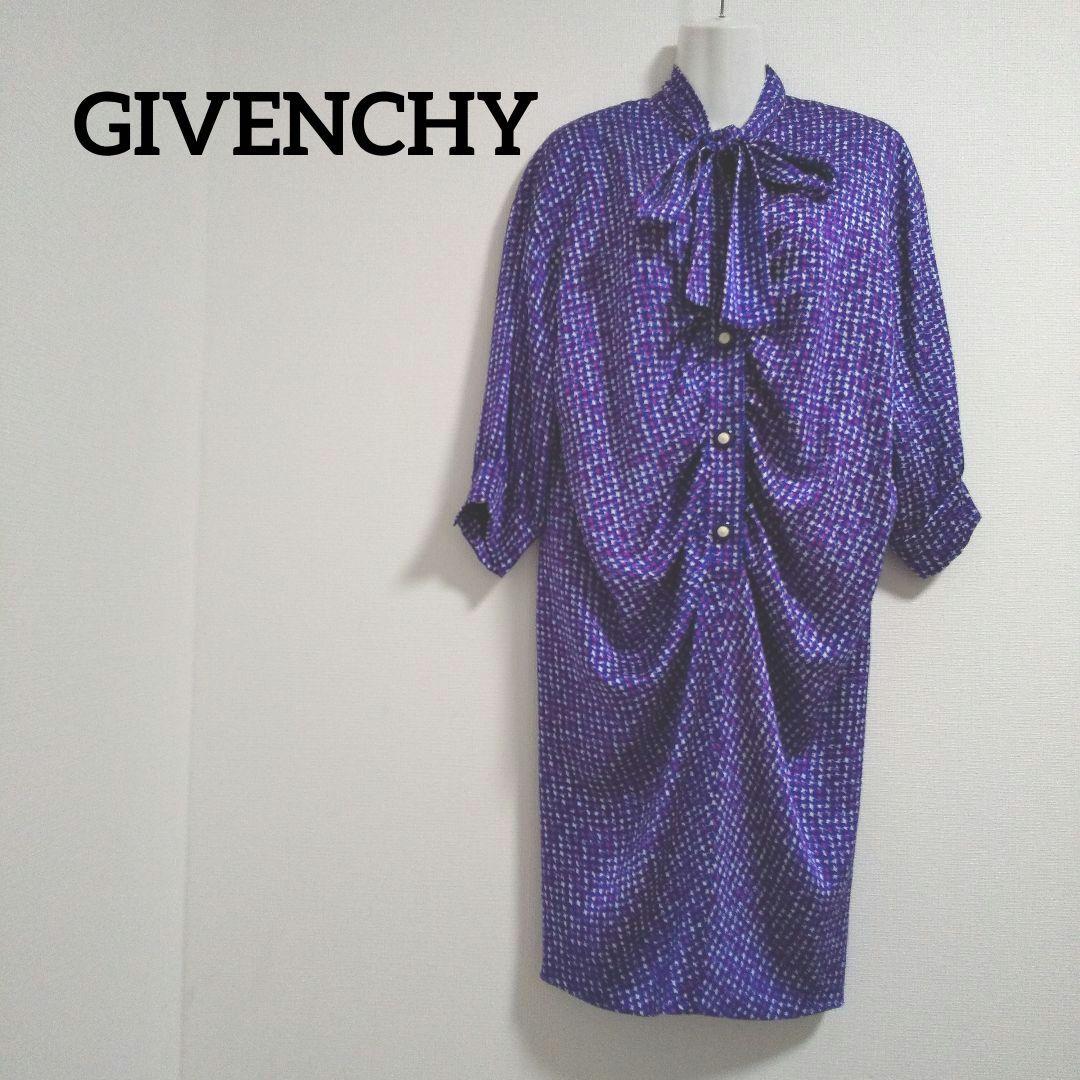 ky249【美品】GIVENCHY コクーンワンピース 総柄プリント リボンタイ
