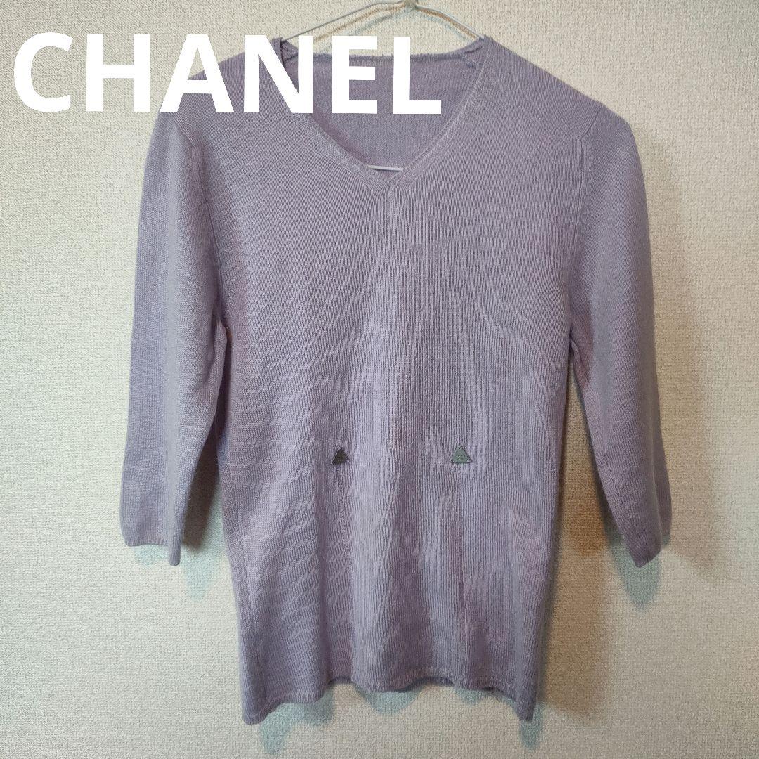 l2 B CHANEL シャネル 七分丈 セーター ニット 薄紫